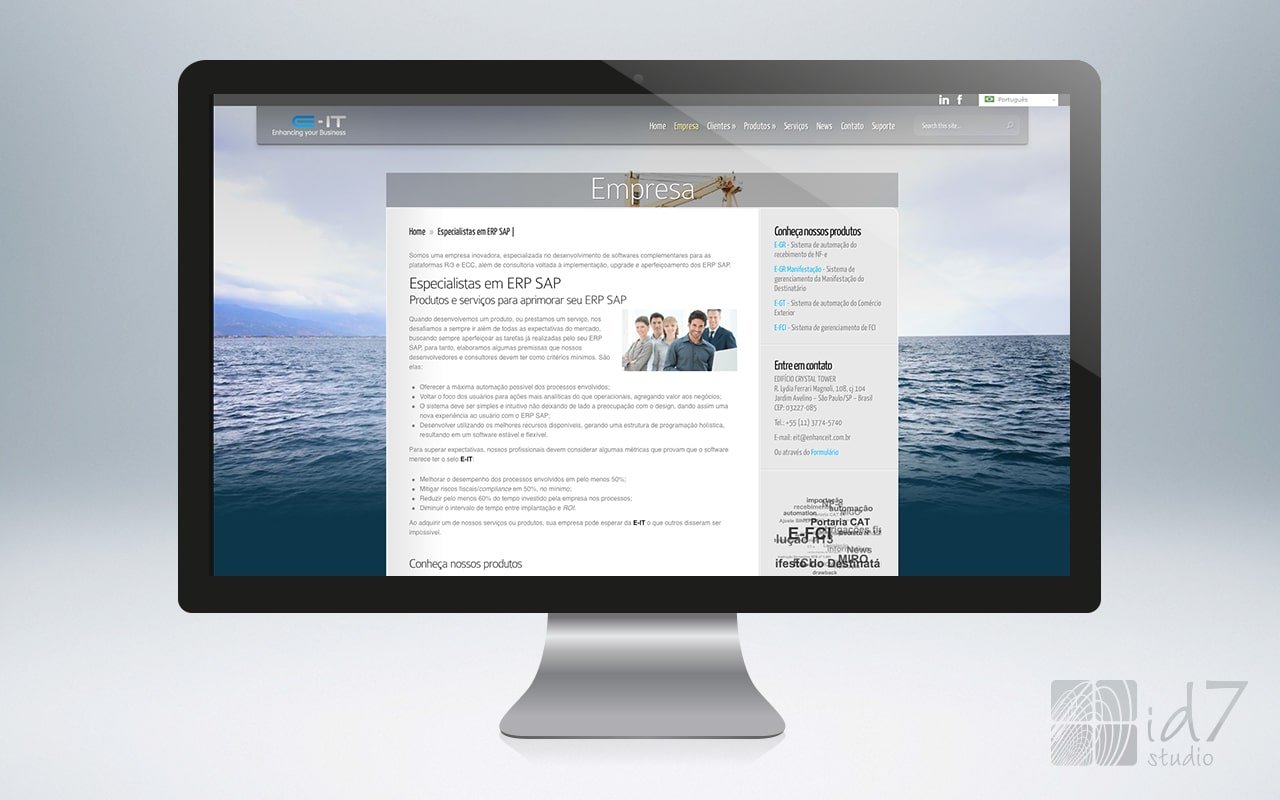 CLIENTE E-IT Projeto Website desenvolvido para a empresa E-IT. SOLICITAR ORÇAMENTO Project navigationAnteriorPrevious project:CGR ConstrutoraPróximoNext project:Creative Clean